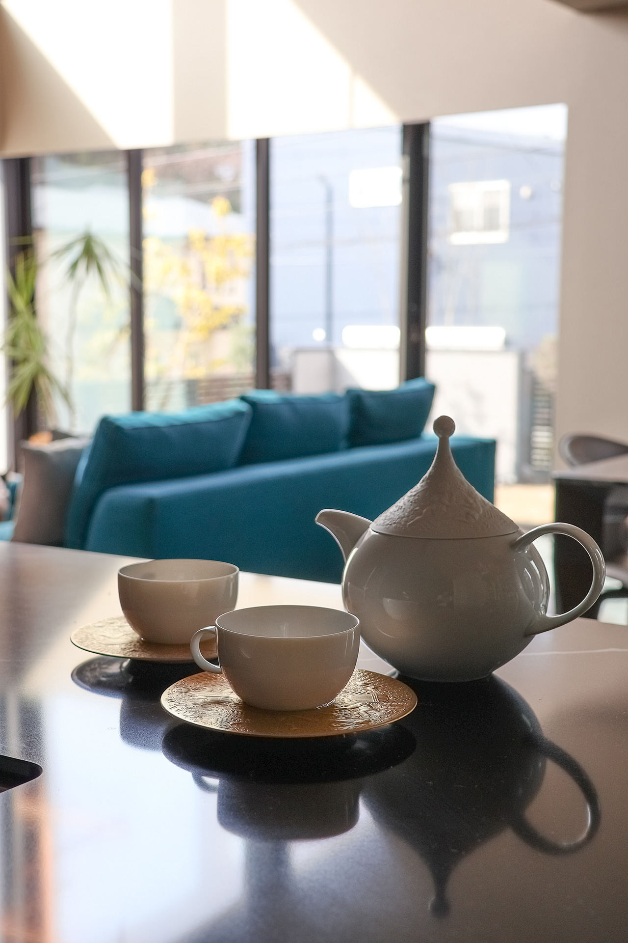ダイニング側には長年コレクションしているカップアンドソーサーを収納
