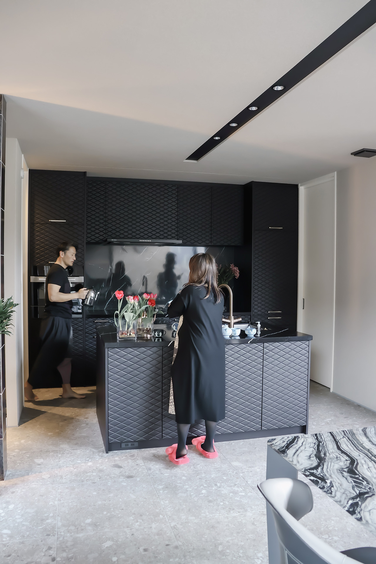 ご主人がハンドドリップのコーヒーを淹れ、奥様はその横でカップを選ぶ…ブラックのキッチンを囲むお二人の姿は映画のワンシーンの様でした!