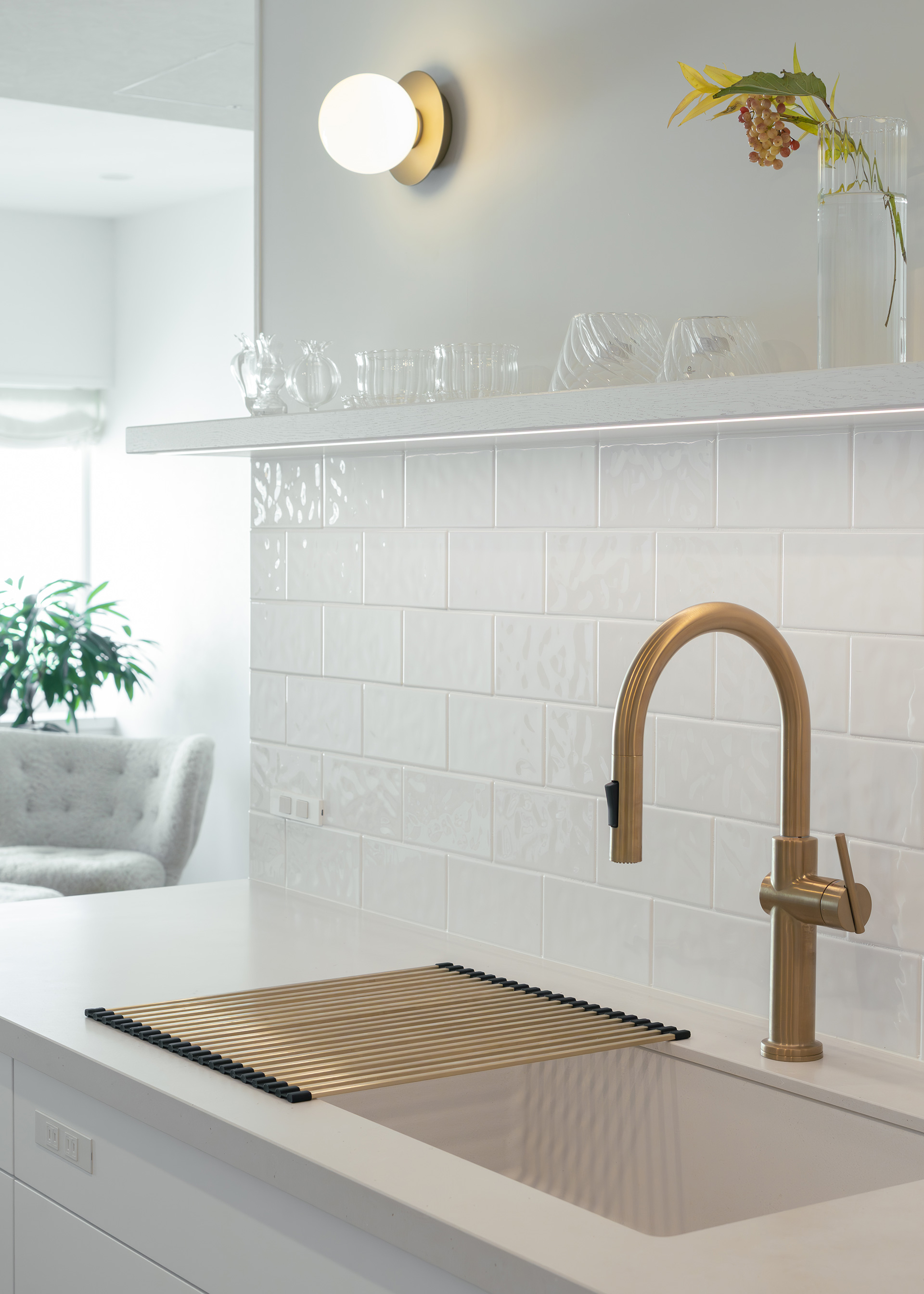 水栓や照明もゴールドをあしらい 華やかさをプラス。
