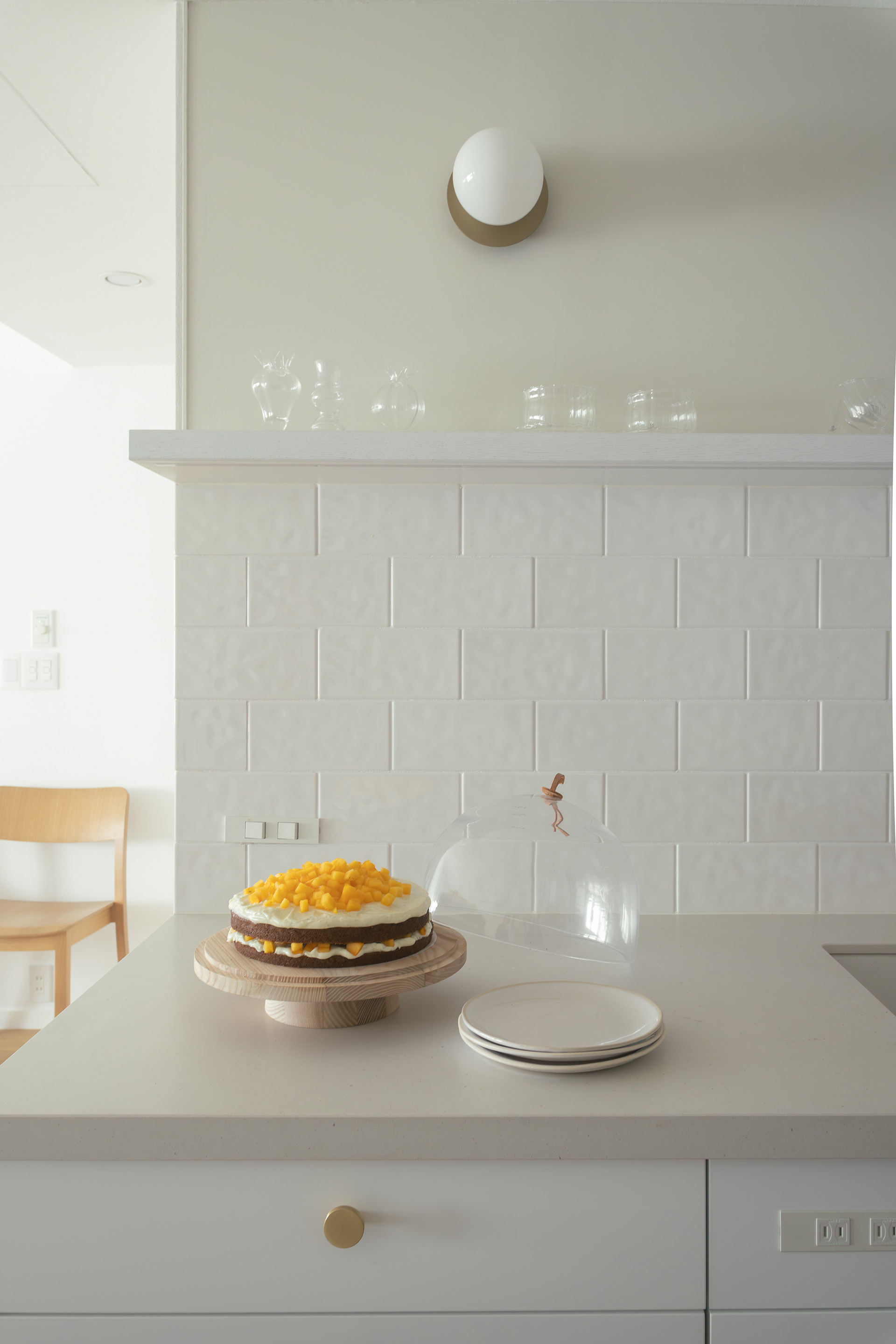 インテリアショップに足を運ぶのもM様の大好きな時間。キッチンに似合う小物や食器を少しずつ揃えて楽しまれているそう。クチーナのキッチンがインテリアと美しく繋がる素敵な空間でした。