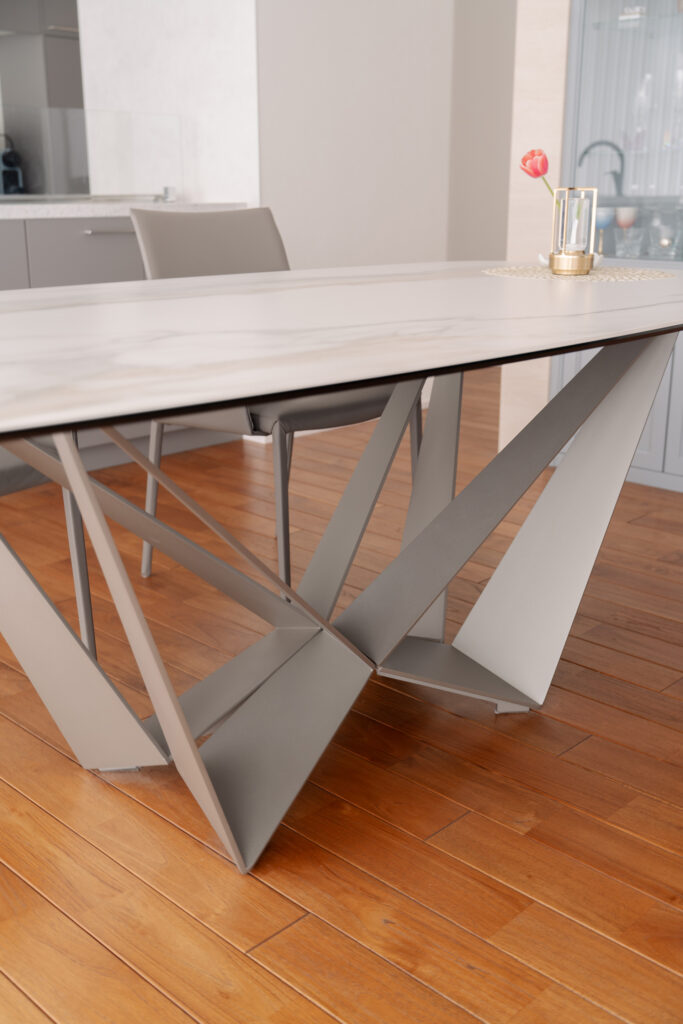 「脚のデザインに一目惚れ。天板はセラミック製でお手入れも簡単で柔らかい曲線のデザインも気に入っています。幼い孫がよく遊びに来るので、角の心配をせずにいられるのもよかったです。 」 とHさま。印象的なデザインでありながら実用性にも優れた高い品質は Cattelan Italiaならではの魅力。