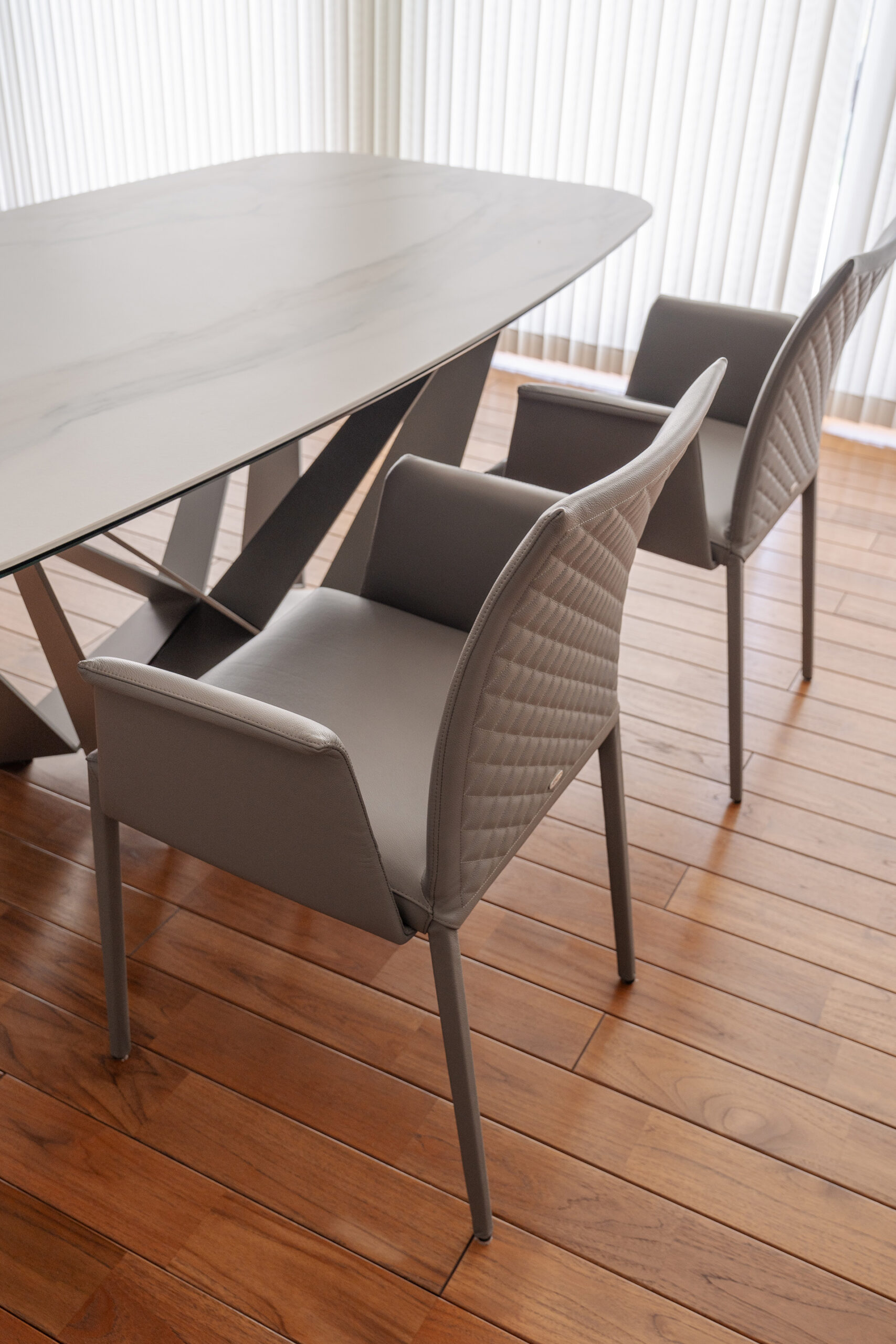 テーブルに合わせたのは、 背面のキルティングが印象的なチェア。