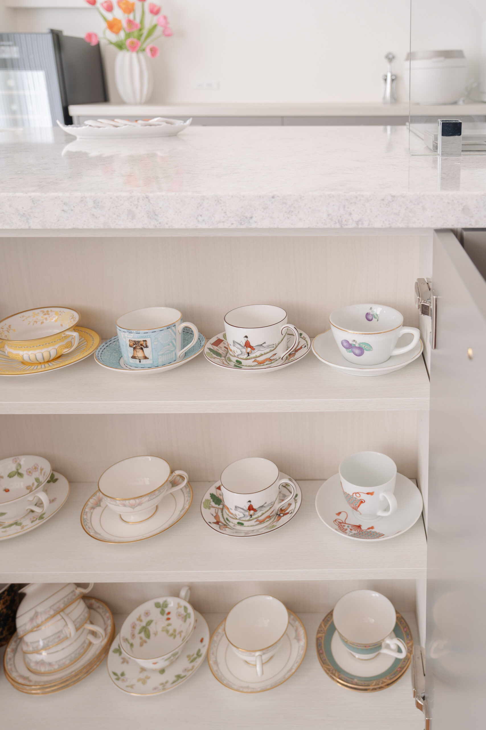 と、Hさま。ダイニング側の収納にはお気に入りの素敵なカップがずらり。