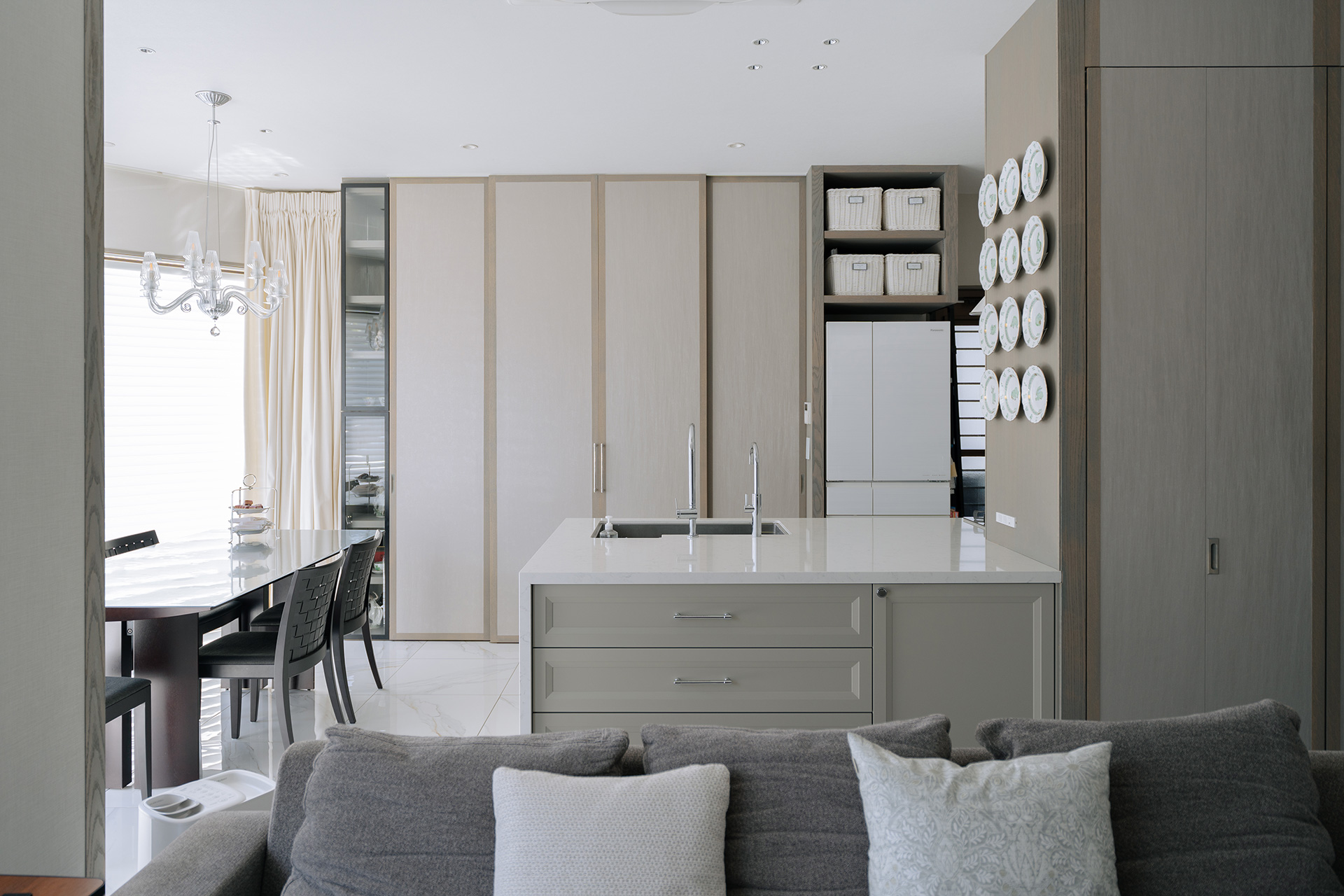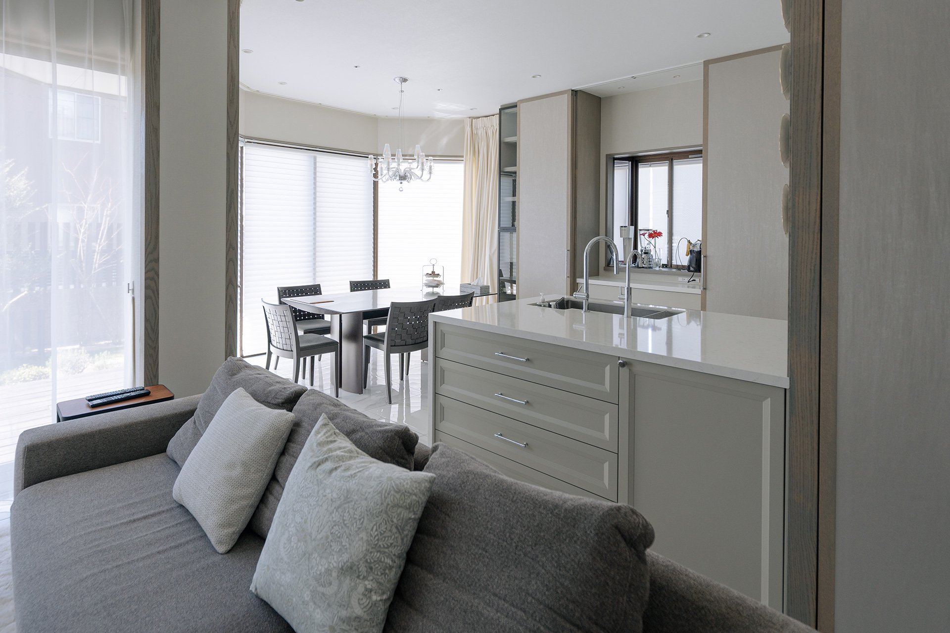 大きな引き戸を閉めれば、生活感をさっと隠して、空間はいつでも美しいままです。